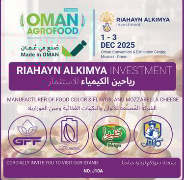 Riahayn AlKimya Investment LLC is proud to announce our participation in AgroFood 2025 Muscat, one of the most important food industry exhibitions in the GCC. The event will take place from 1–3 December 2025 at the Oman Convention and Exhibition Centre, bringing together leading food manufacturers, suppliers, and buyers from across the region.
