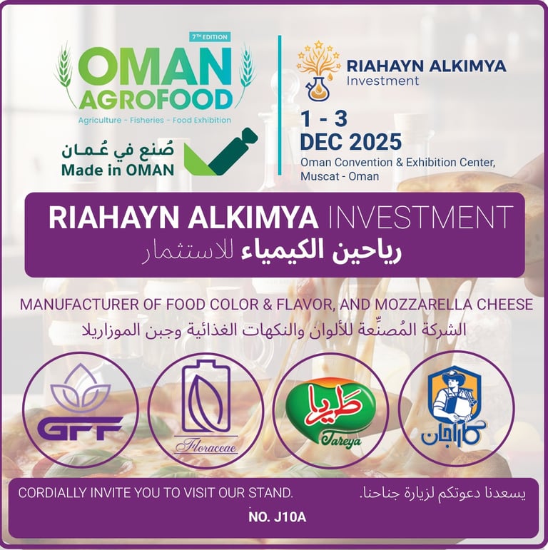 Join us at AgroFood 2025 Muscat and explore the future of Made in Oman cheese, flavours, and food ingredients.